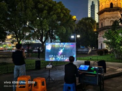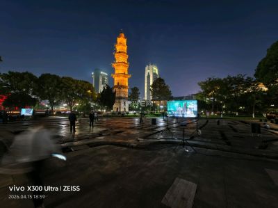 :城市广场没有以往的热闹,晚上广场唱唱K,也是一道风景。(2026-04-16 09:25)
