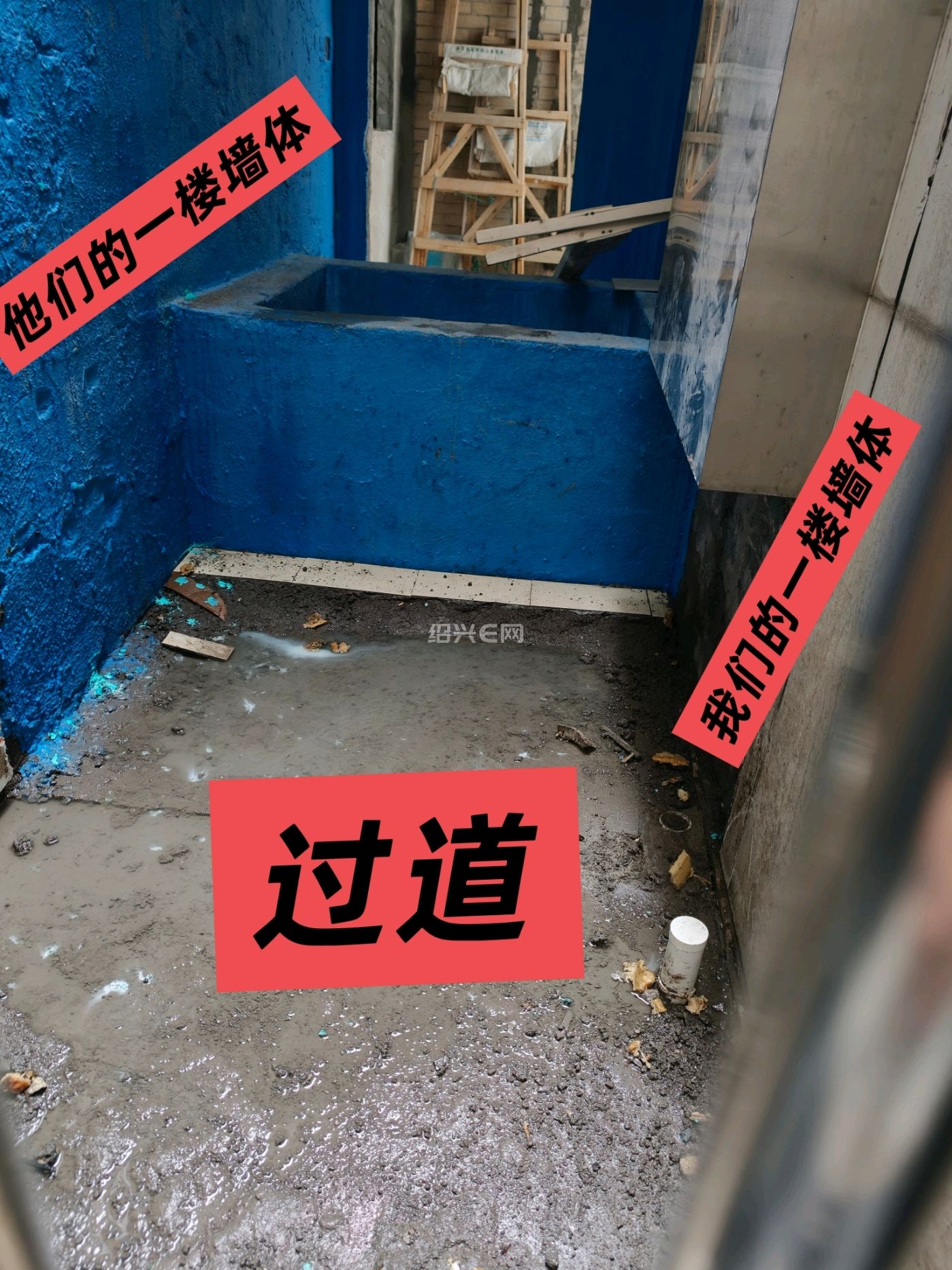原本两个互不相干的房子,他们是北面房子,我们是南面房子,就因为这个违章过道,连接在一起,现在对方要求在这边做浴缸,卫生间,紧挨着我们墙体,而且我们这边刚好是厨房,会对我们造成很大的困扰,比如 卫生间下水、马桶、地漏如果密封不好,臭味、异味很容易顺着墙体、管道、门缝飘到我家厨房,厨房是做饭吃饭的地方,长期有厕所味会非常难受;马桶冲水、水管上水、排水、排气扇工作,声音会通过墙体传过来。尤其晚上安静的时候,冲水声音会很明显,潮湿、发霉风险,卫生间长期用水,墙面、地面容易渗水、返潮。导致我家这面墙发霉、墙皮脱落、家具受潮。目前沟通过好几次都没有结果。一直沟通无效,房屋一直还在装修。