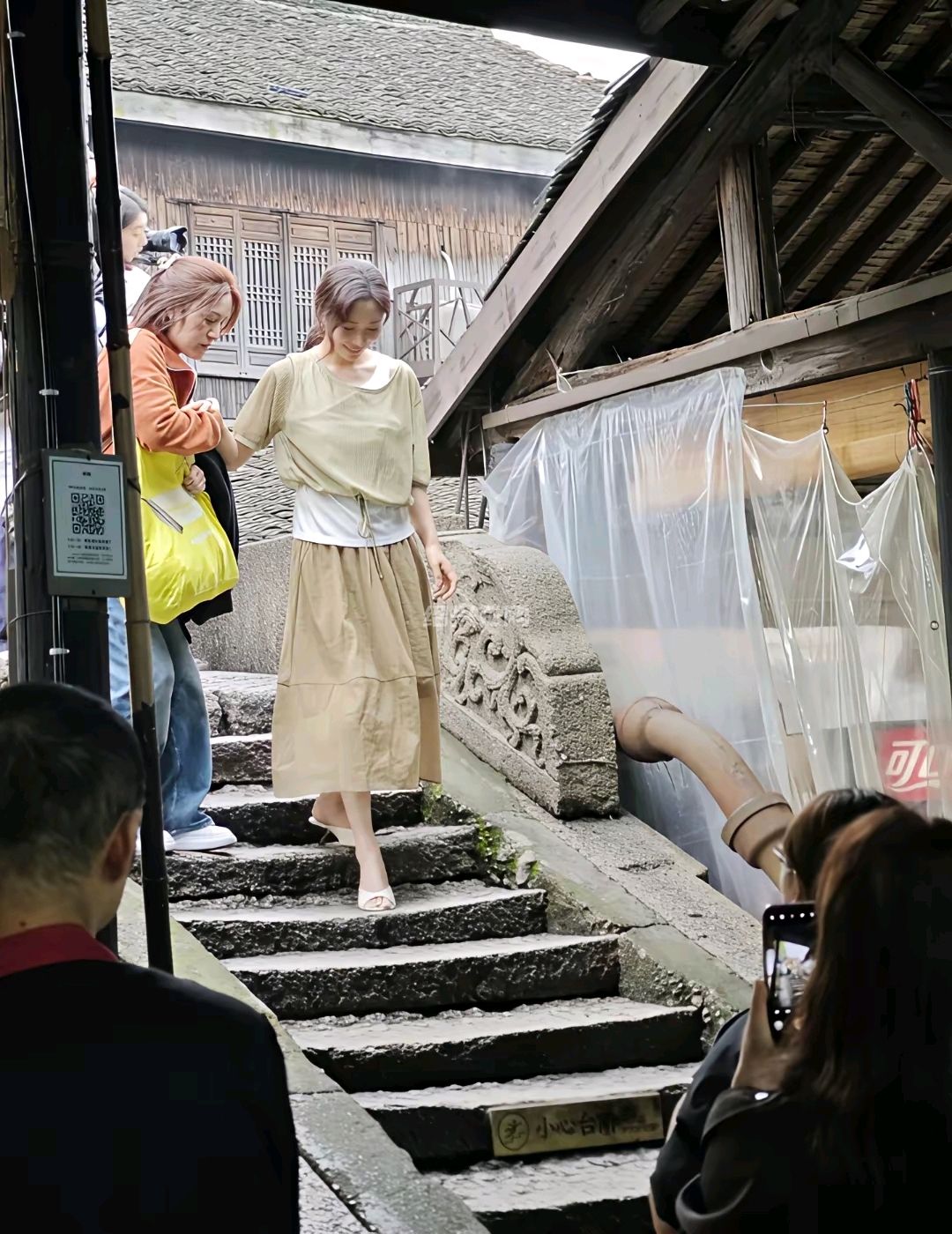 绍兴偶遇江一燕啦在安昌古镇好米一个人,瘦瘦高高的好像在拍摄杂志,
