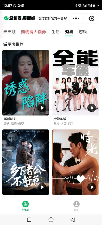 无意中点开微信支付的服务管理,发现居然藏着大量低俗短剧,还打着“看剧领提现券、免手续费”的幌子诱导观看,实在让人愤慨!
