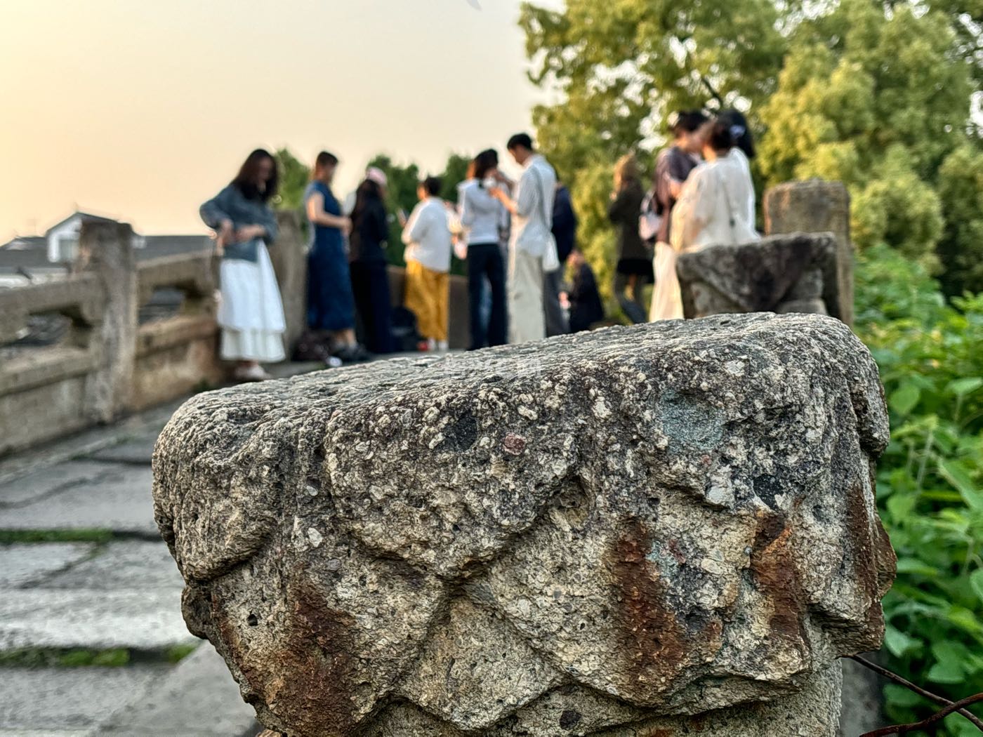 夕阳下,广宁桥两侧诗情画意,游客纷纷打卡留影