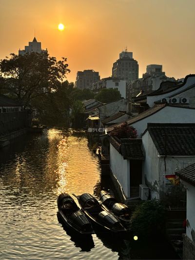 夕阳西下,水乡真美!