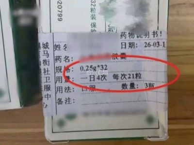 浙江绍兴一位应大妈因脚部受伤,到越城区马山街道社区卫生服务中心就医,结果院方开错了一种口服药的剂量,一次2粒变成了一次21粒,应大妈遵医嘱在一天内服用了42粒胶囊。
