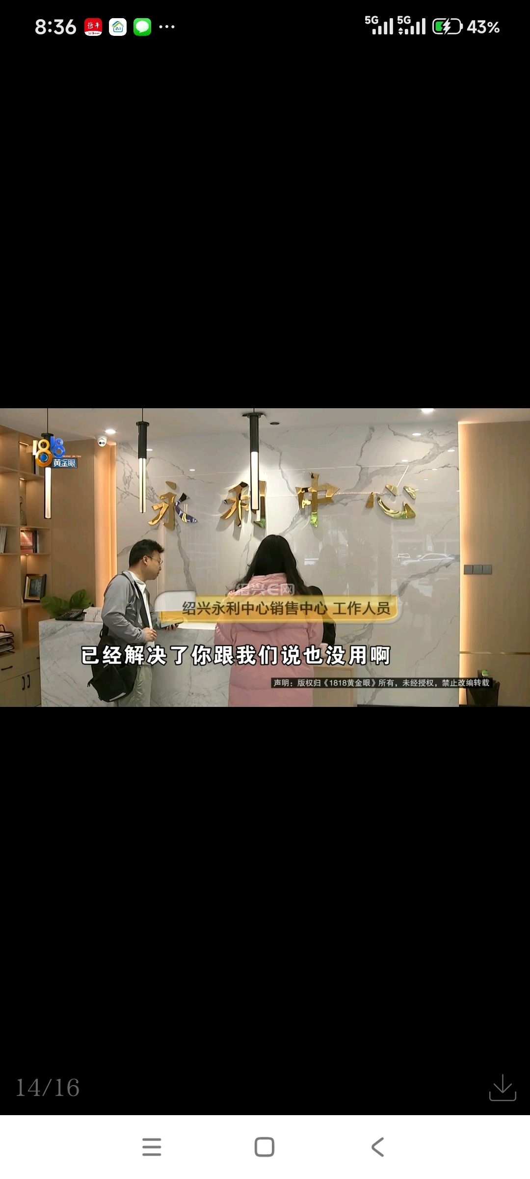 绍兴永利中心销售中心 工作人员:你又不在我们这里买的,已经解决了,你跟我们说也没用啊。