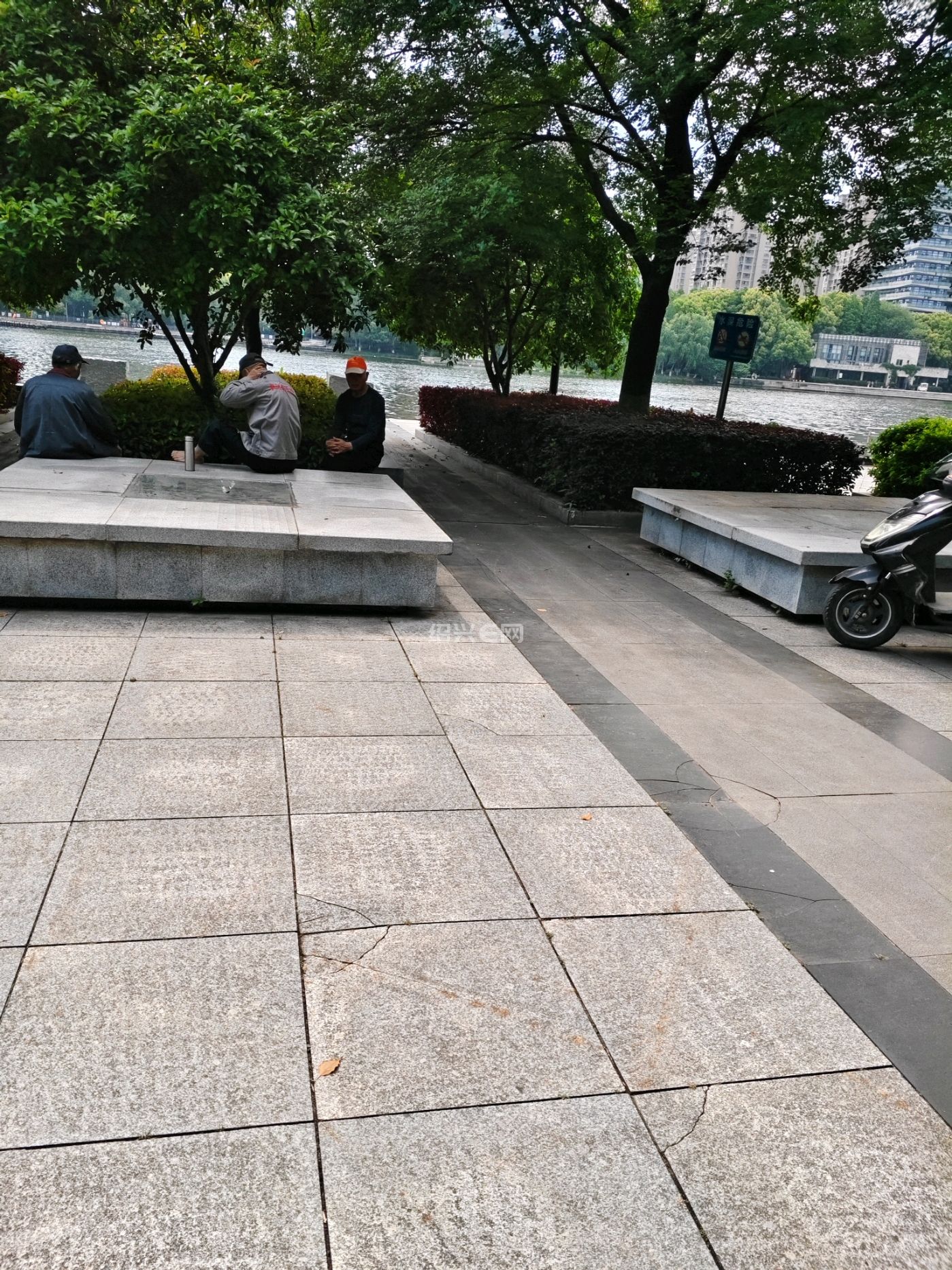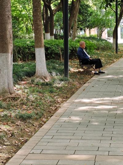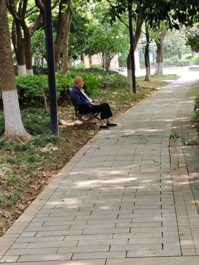 今天天气有点热。小公园里的老人在树荫下乘凉。挺惬意的。