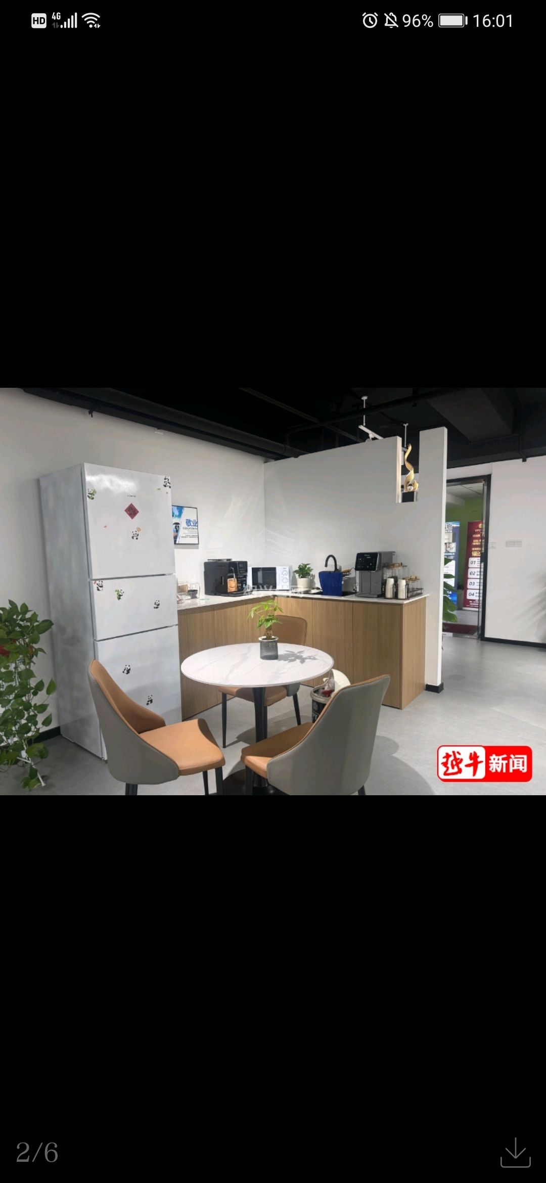 推开该公司的大门,这里窗明几净,水吧零食一应俱全,甚至还有专门的直播间。很难想象,坐在这里办公一个月,只要99元。