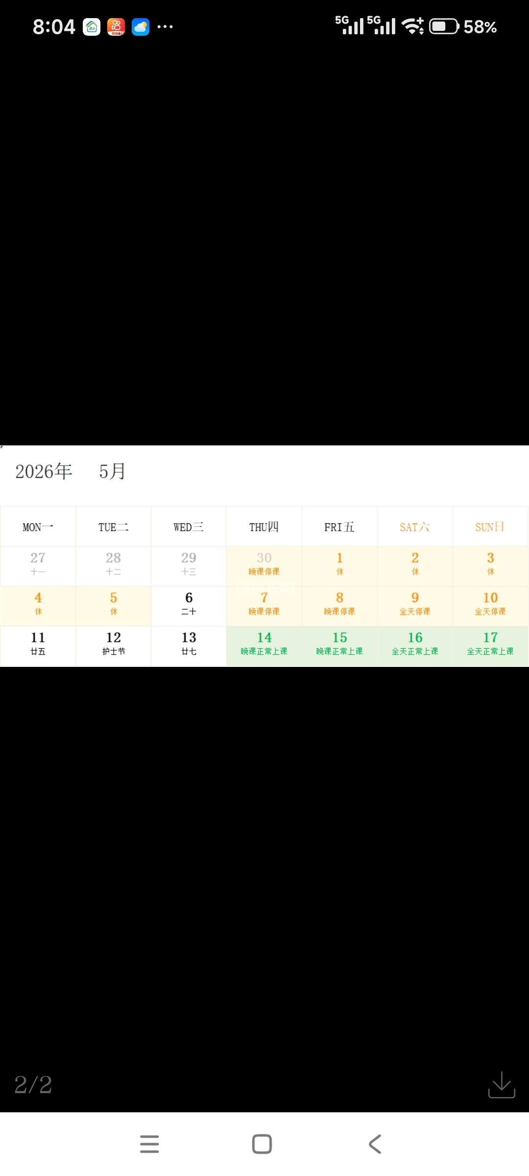 4月30日(周四)、5月7日(周四)、5月8日(周五)晚课停课;