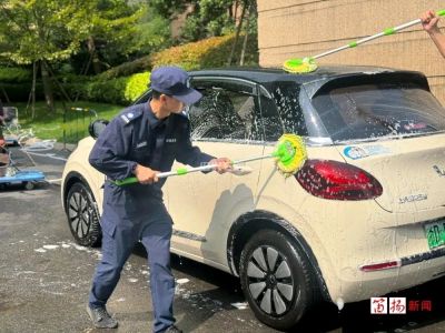 在小区车道出入口,保洁、保安、工程等多岗位工作人员联动协作,组成了一支“洗车天团”。大家分工明确,配合默契:有人手持高压水枪冲洗车身泡沫,有人用吸水毛巾仔细擦干水渍,还有人用清洁刷耐心清理车窗缝隙、轮毂等细节部位。从车身到轮毂,从车窗到边角,每一处都不放过。大家各司其职、相互补位,一辆辆沾满灰尘的车辆很快变得光亮如新。平时工作忙,根本没时间仔细洗车,物业这个活动太贴心了!”看着焕然一新的爱车,业主们纷纷为物业的暖心服务点赞。小区业主张先生已多次参加便民洗车活动,他告诉记者,去年年底准备回家过年时想好好洗个车,但洗车店普遍涨价,自助洗车驿站也排起了长队。“没想到小区物业特地全员加班,为业主提供免费洗车服务,实在是太‘香’了。”张先生笑着回忆道。